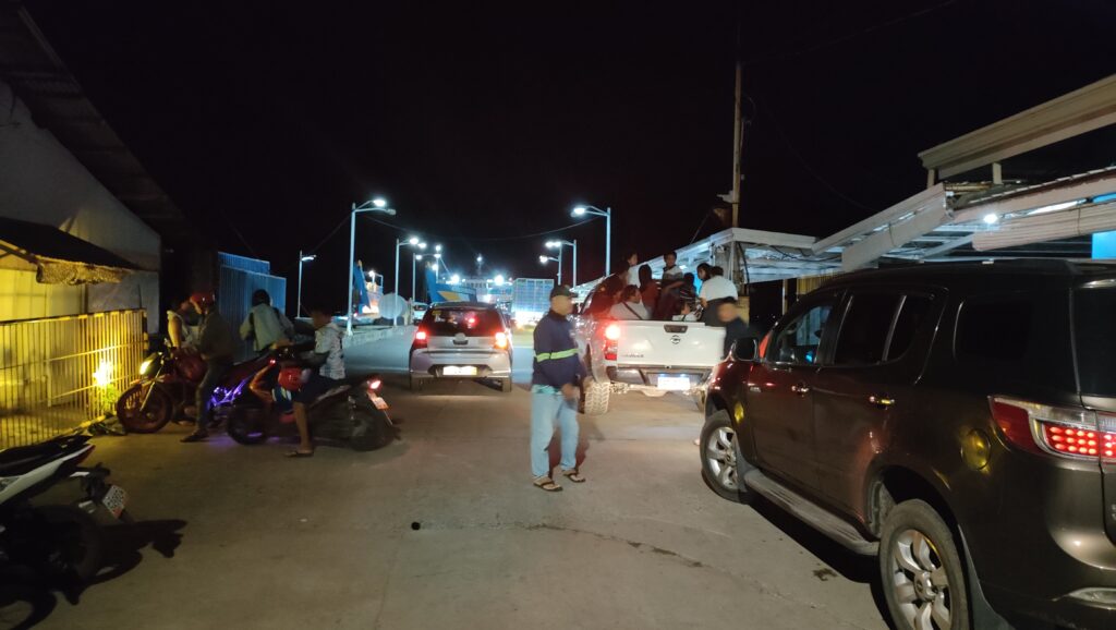朝3時起床、港へ。バスを捕まえるとネットにあったが、バイクの兄さんが話しかけてくれたので₱150(420円)で乗せてもらった。