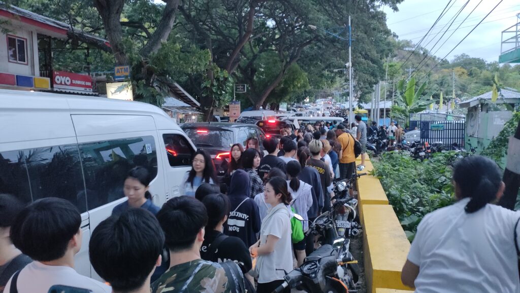 対岸のリロアン港に到着、バイクを捕まえて、オスロブに到着したのは5時45分ごろ、既にとんでもない行列ができていた。台風で金曜土曜が中止になったため、3日分の人が押し寄せているらしい。