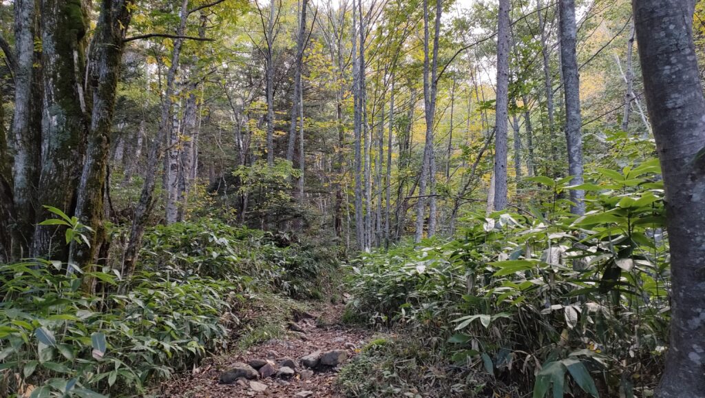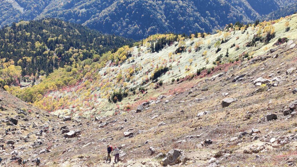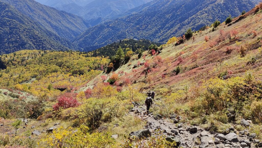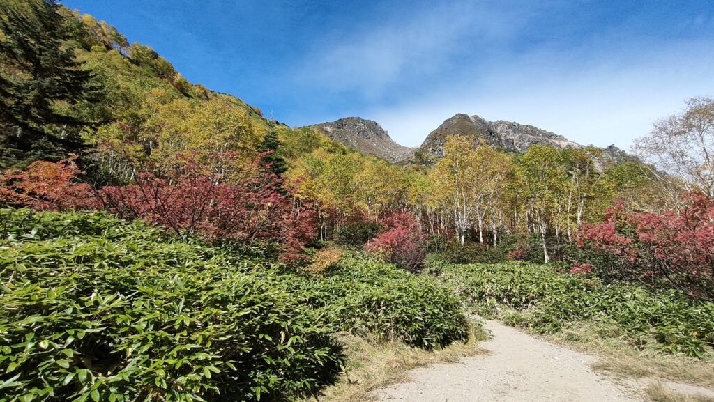 ここから中の湯方面へ、紅葉を楽しみながらゆっくりと下る。