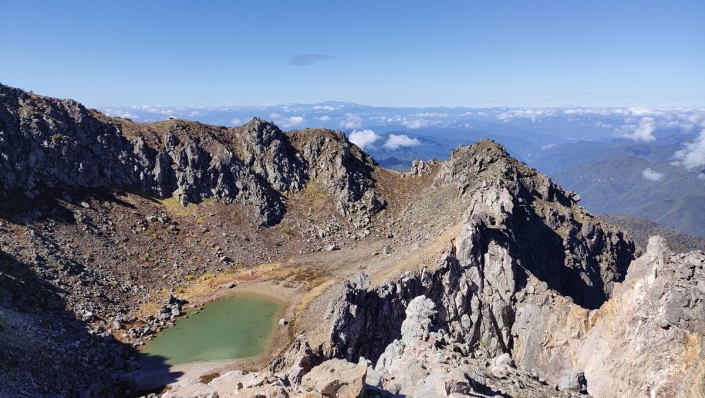 硫黄の匂いが噴き出す道を登ること1時間、焼岳北峰に到着した。