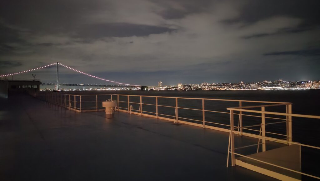 日が落ちるのが早くなって、連絡バスに乗り込む頃がきれいな夕日で、港に着いた時には真っ暗だった。