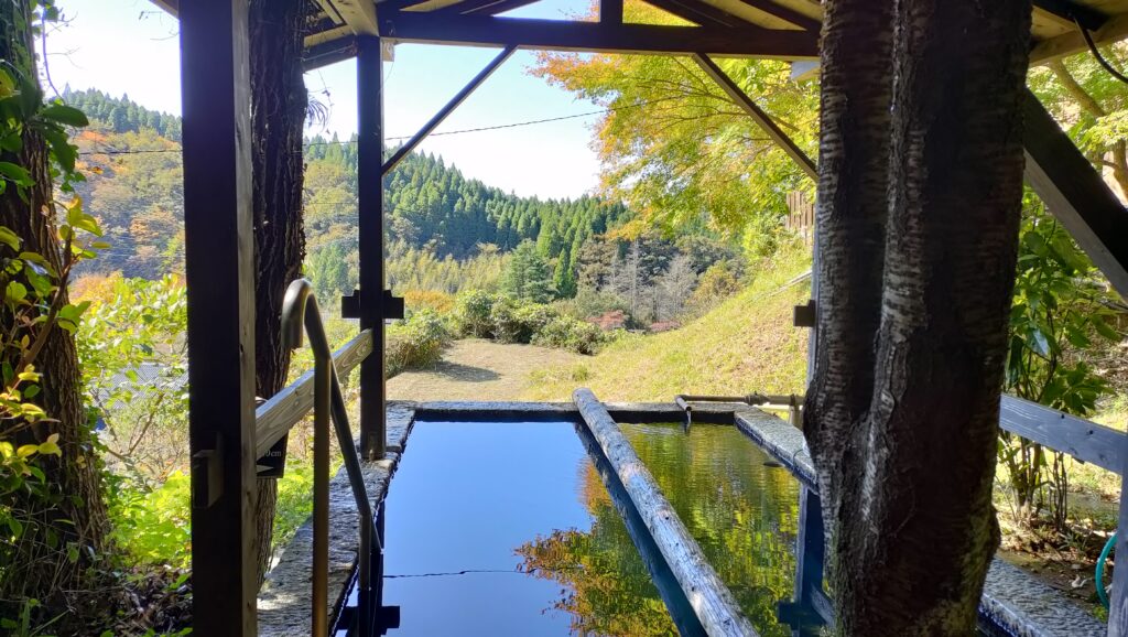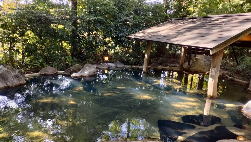 2つ目はこうの湯。西の端、ちょっと山上にある。中心地から外れた立地を活かして、樹木に囲われた開放的な露天風呂になっている。