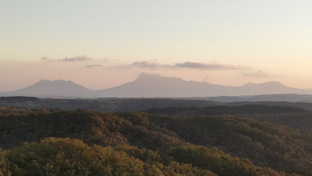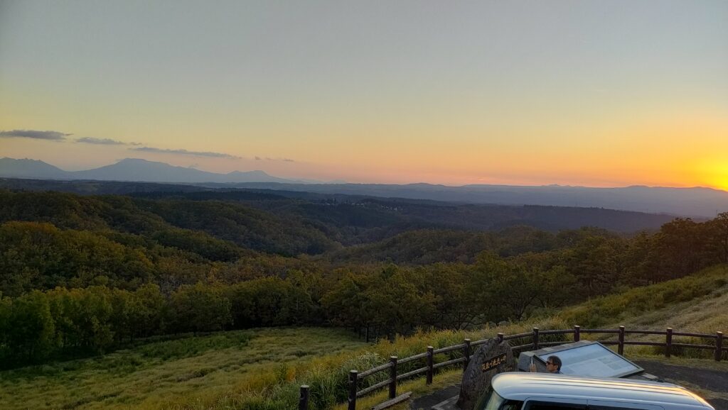 風呂に浸かって上がってを繰り返していると疲れてきた。夕日を平野台展望所で眺め、真っ暗になる前に宿に到着した。