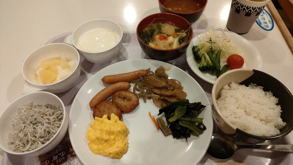 翌朝5時半起床、朝食バイキングを楽しむ。